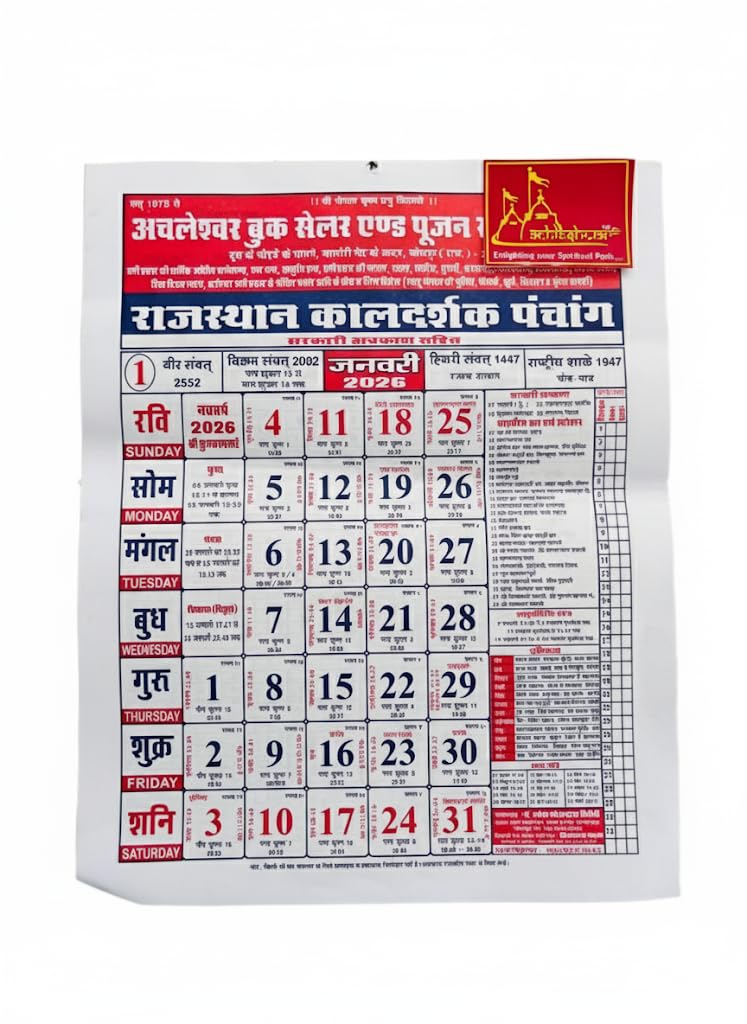 Achleshwar Rajasthan kaldarshak Panchang 2026 / Achleshwar calender Hindi Panchang Calendar Hindi Dates and All Festivals.(12 Pages,Multicolor) 2026