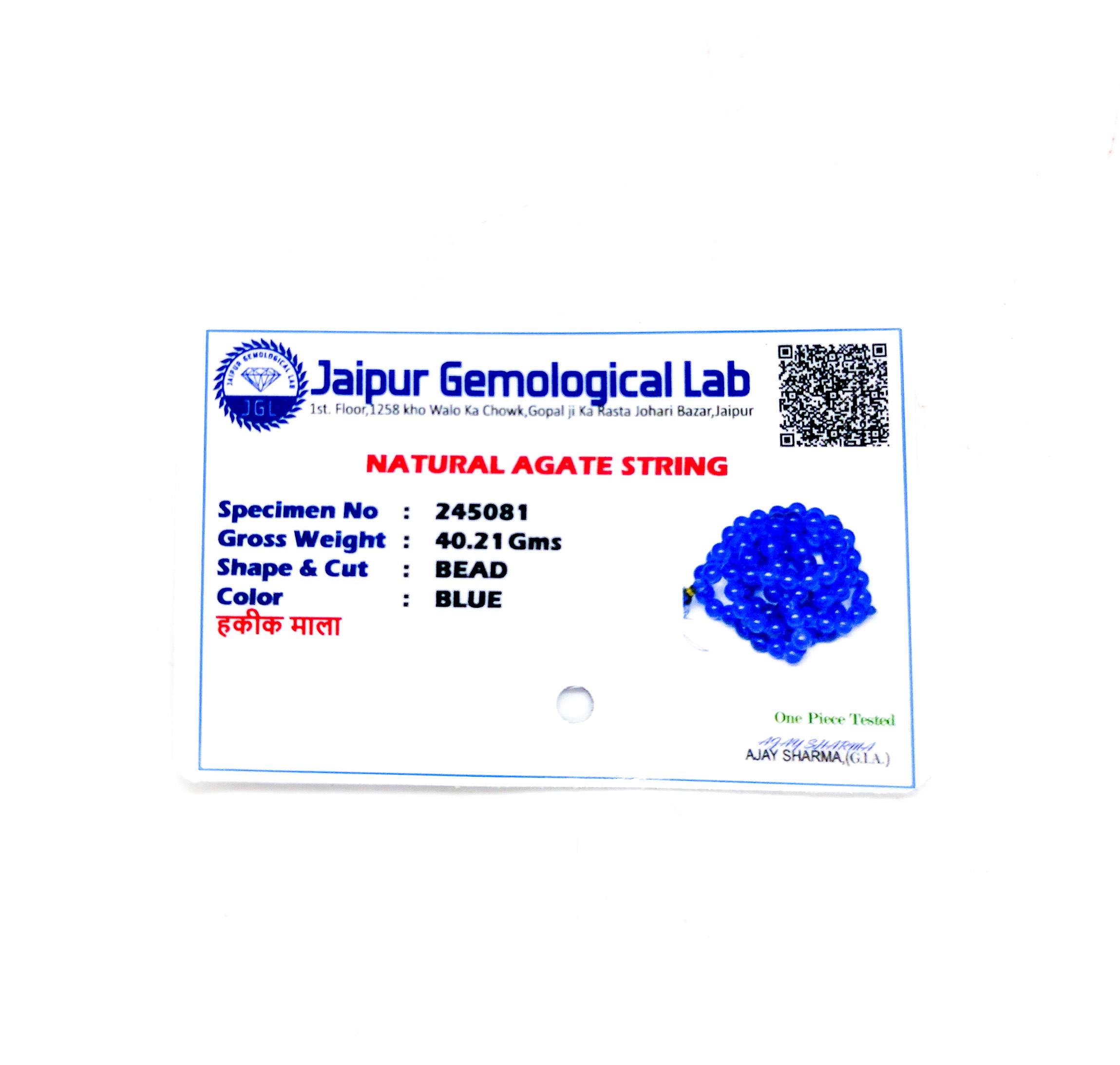 ब्लू हकीक माला को पहनने या धारण करने से व्यक्ति को मानसिक शांति और स्थिरता मिलती है। यह माला मन की चंचलता को दूर करती है और व्यक्ति को ध्यान और मेधा शक्ति में सुधार करती है।