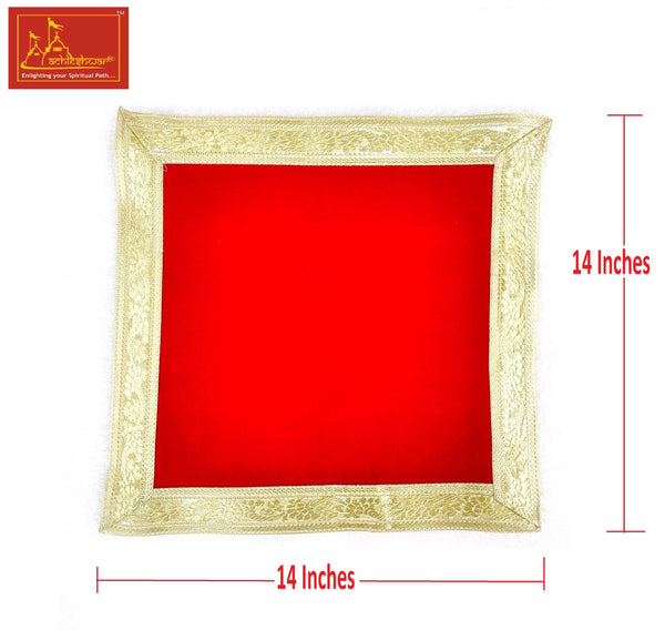 The Red Velvet Aasan For Mandir 14*14 is a high-quality ceremonial mat that is used in Hindu temples and home mandirs during religious ceremonies and puja. The Aasan is made of soft velvet fabric and is typically rectangular in shape,