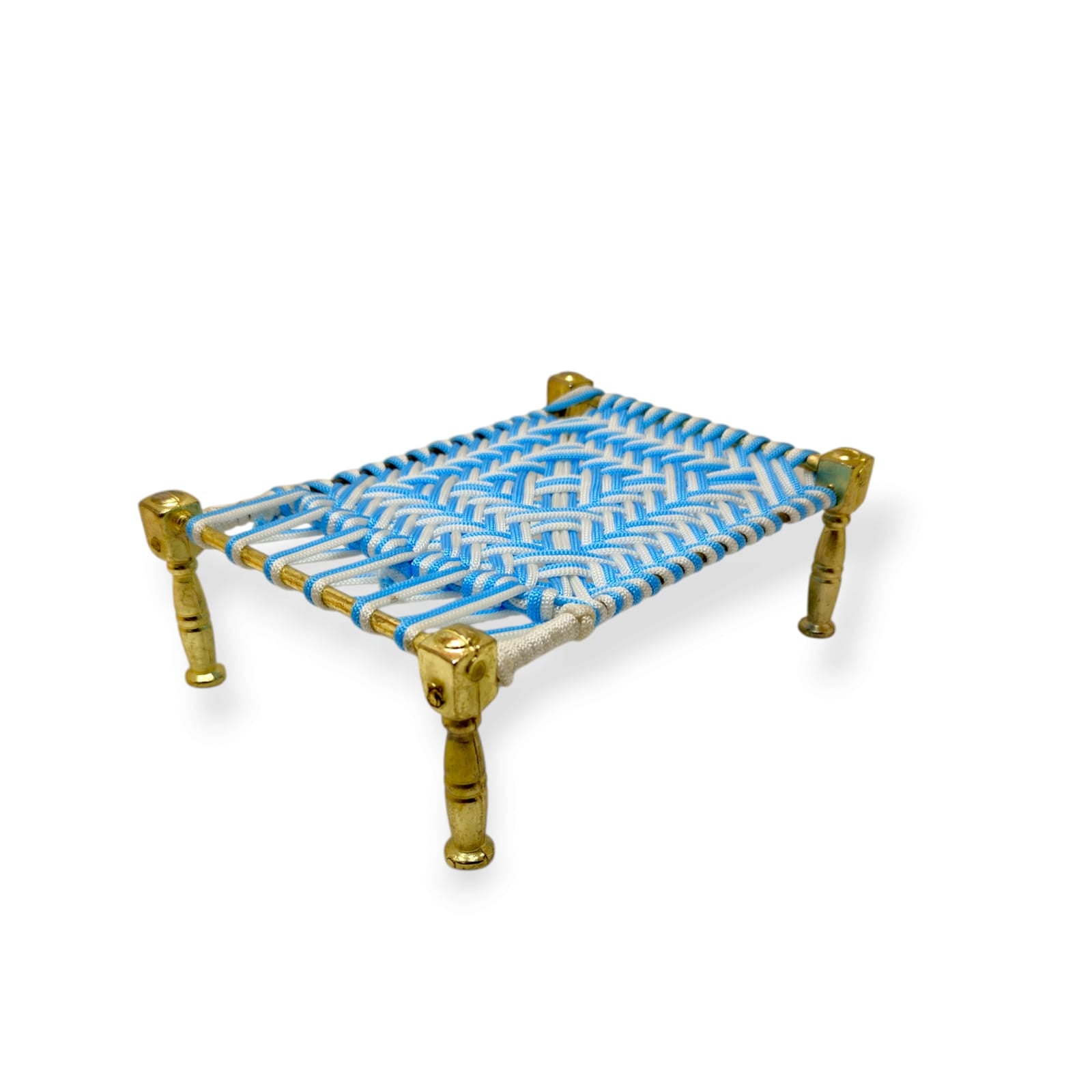 Bring home the divine charm of rural India with the Achleshwar Metal Mini Charpai Bed for Laddu Gopal. This miniature khatiya features a sturdy metal frame and handwoven cotton rope, offering a traditional sleeping arrangement for your beloved Bal Gopal. Designed for decorative use in pooja rooms, this charpai is ideal during festivals like Janmashtami, or for daily devotional rituals.