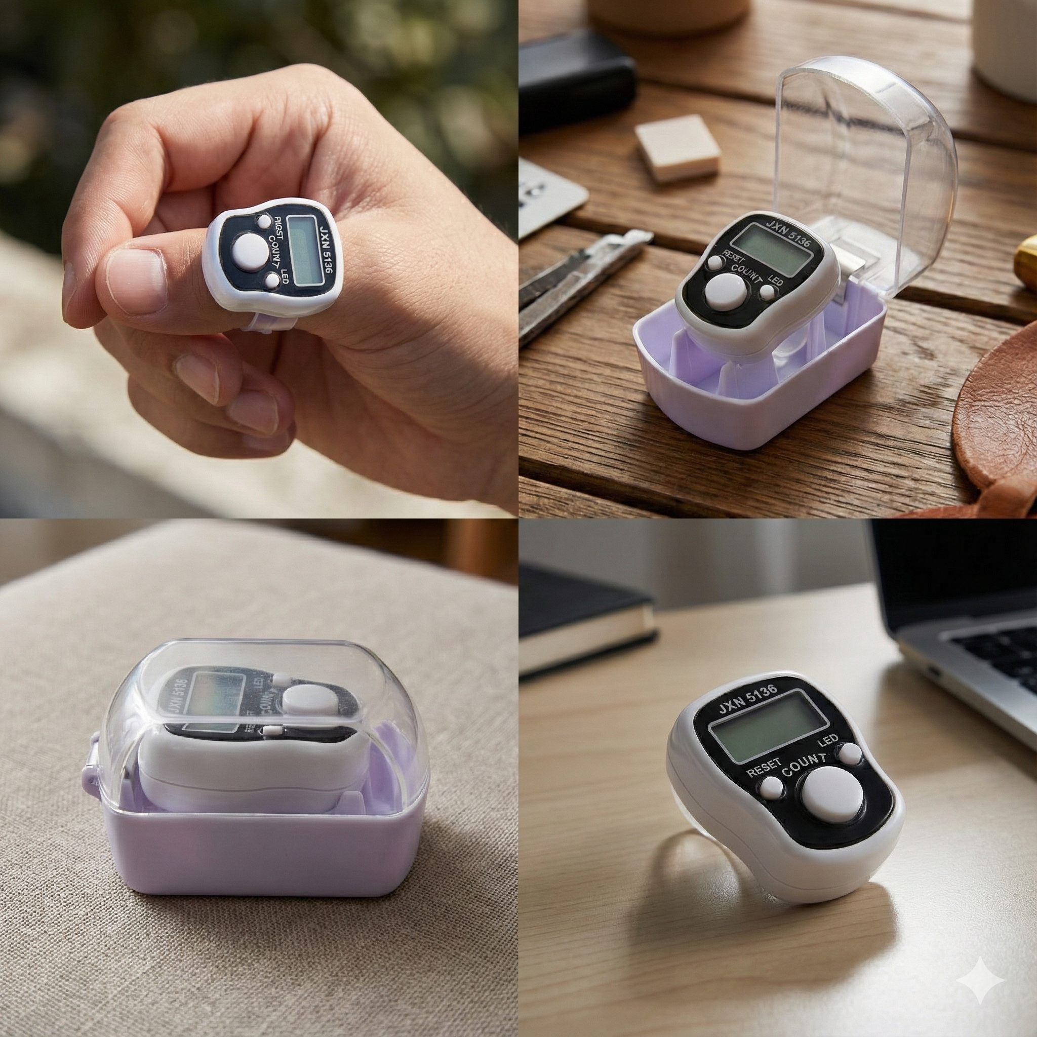 Equipped with a bright LED light and a clear digital display, it ensures easy visibility even in low-light conditions such as early morning or evening pooja. The compact, lightweight design fits comfortably on the finger, making it an ideal alternative to traditional mala beads. Box packing ensures safe storage and makes it suitable for gifting on religious occasions.