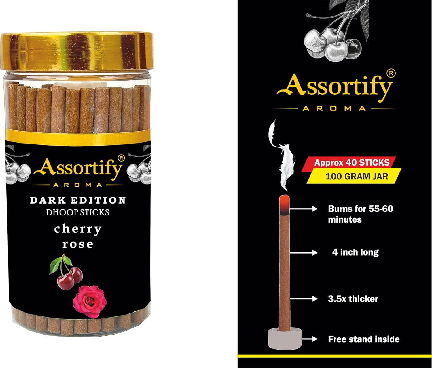 Cherry Rose Dhoop Sticks Jar|Natural Ingredients||100Gm Jar Packaging | Less Smoke|