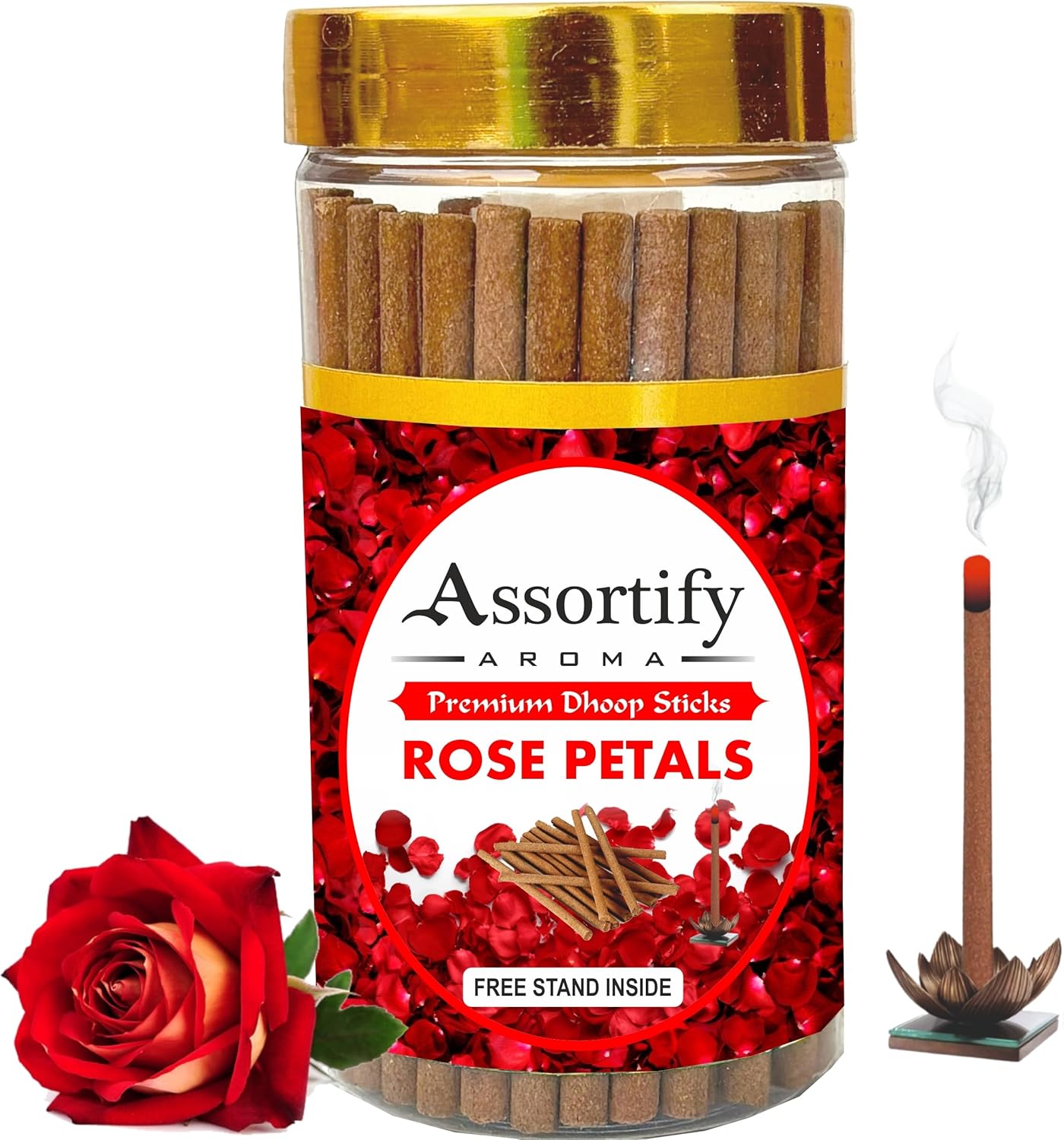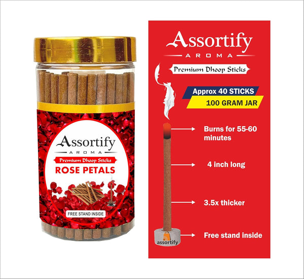 Rose Petals Dhoop Sticks Box|Bamboless||100gm Jar Packaging | Less Smoke|