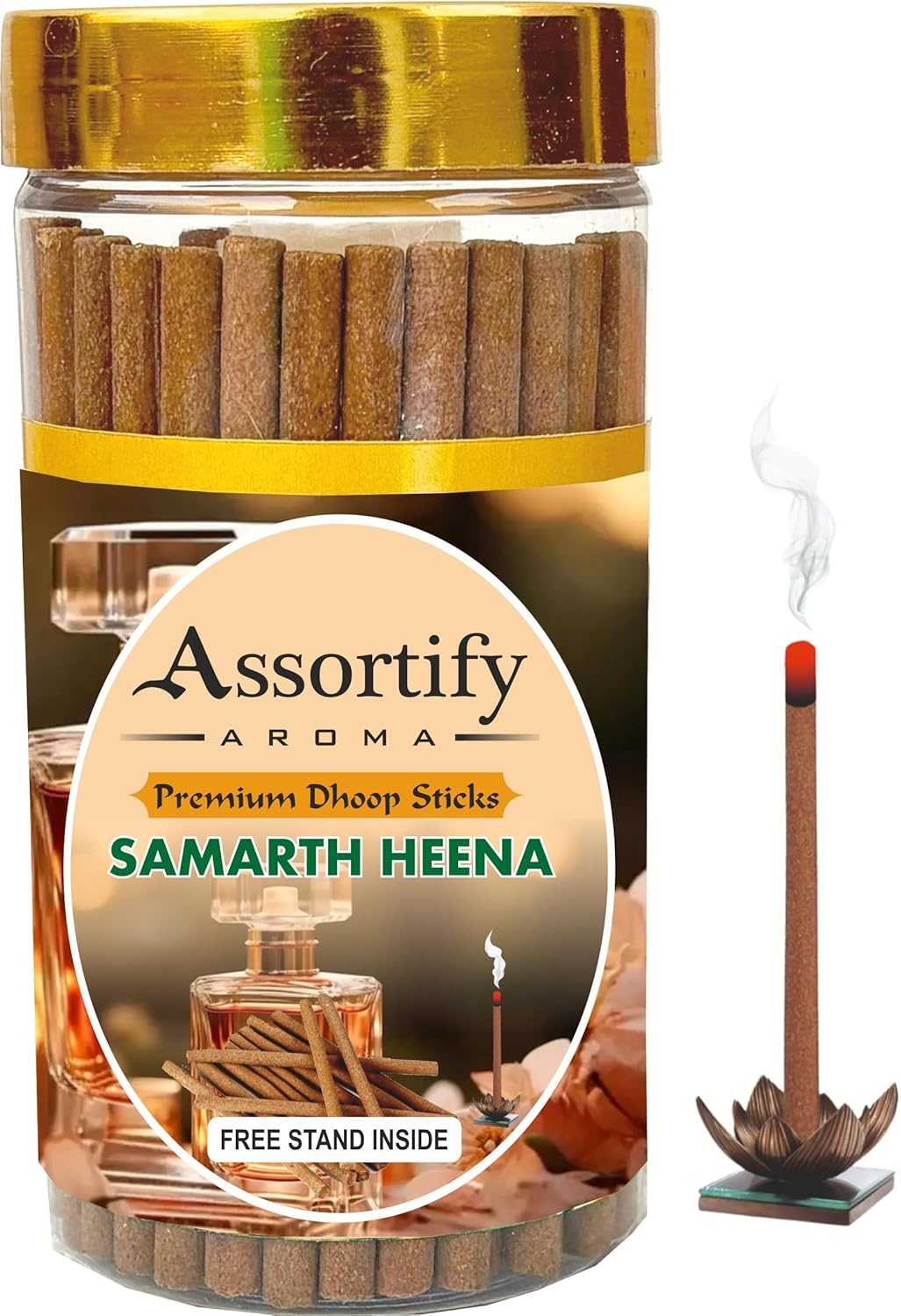 Samarth Heena Dhoop Sticks Box|Bamboless||100gm Jar Packaging | Less Smoke|