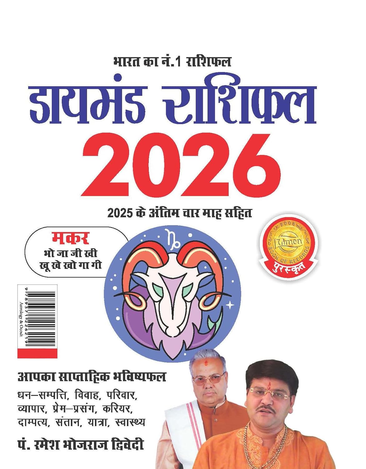 डायमंड राशिफल मकर (मकर-साधक) 2026 आपको आने वाले वर्ष के लिए विस्तृत और सटीक भविष्यवाणी प्रदान करता है। इस राशिफल में मकर राशि के जातकों के लिए स्वास्थ्य, करियर, धन, परिवार, शिक्षा, यात्रा, और वैवाहिक जीवन से जुड़ी महत्वपूर्ण जानकारी शामिल है। वर्ष 2026 में ग्रहों की स्थिति, शनि, राहु, केतु और अन्य ग्रहों के प्रभाव के आधार पर आपके जीवन में आने वाली अवसरों और चुनौतियों की स्पष्ट जानकारी दी गई है। यह राशिफल आपको अपने लक्ष्यों की प्राप्ति, मानसिक शांति और आर्थिक स्थिति सुधारने में मार्गदर्शन करेगा। मकर राशि के जातक इस वर्ष सावधानीपूर्वक निवेश, स्वास्थ्य का ध्यान, और परिवारिक संबंधों पर विशेष ध्यान दें। सरल भाषा में तैयार किया गया यह राशिफल सभी आयु वर्ग के लिए उपयुक्त है। इस डायमंड राशिफल मकर 2026 में आपको दैनिक, साप्ताहिक और मासिक सुझाव भी मिलेंगे, जिससे आप अपने जीवन में सकारात्मक बदलाव ला सकते हैं। आध्यात्मिक मार्गदर्शन और ग्रहों की चाल के अनुसार अपने फैसलों को मजबूत करें और वर्ष 2026 को सफल बनाएं।