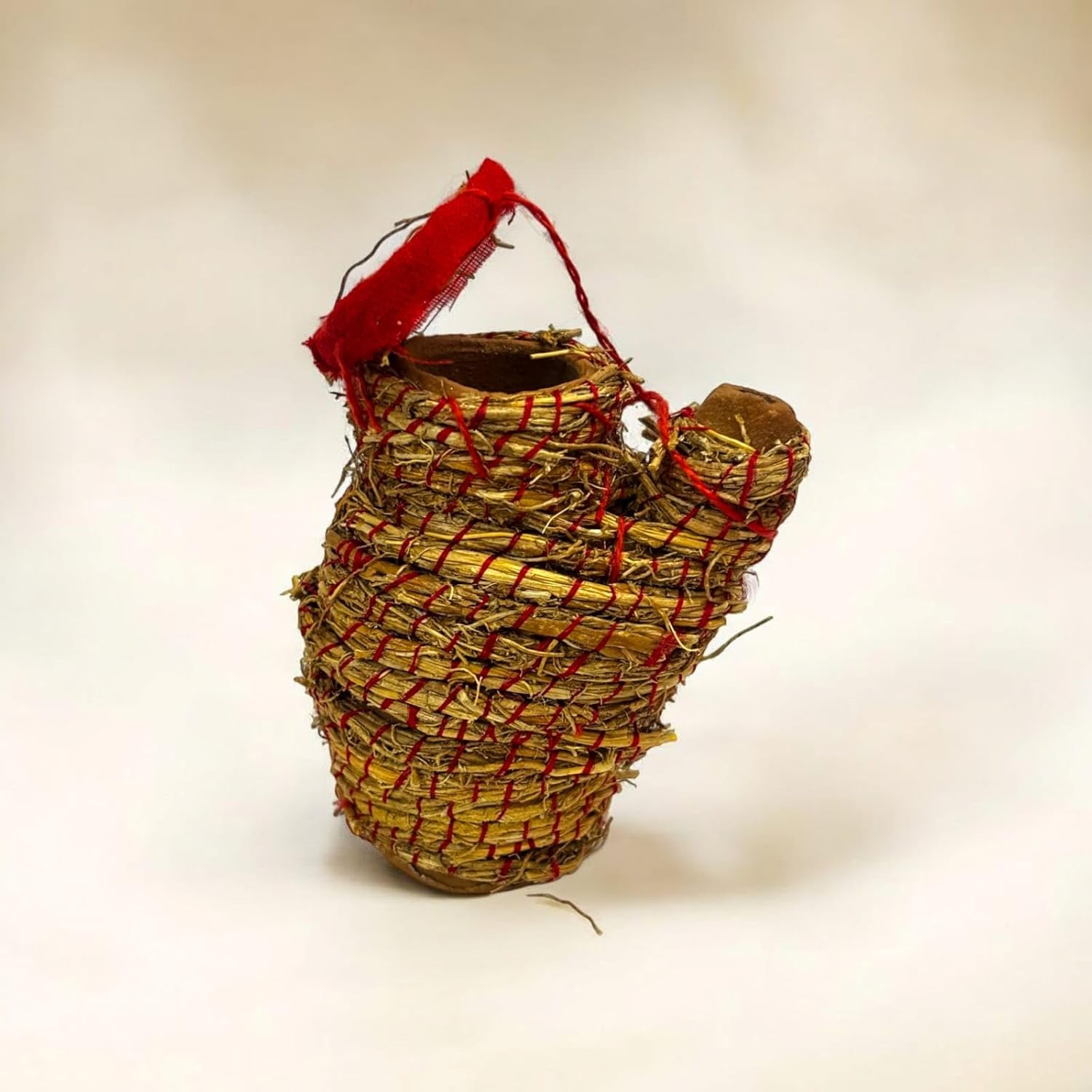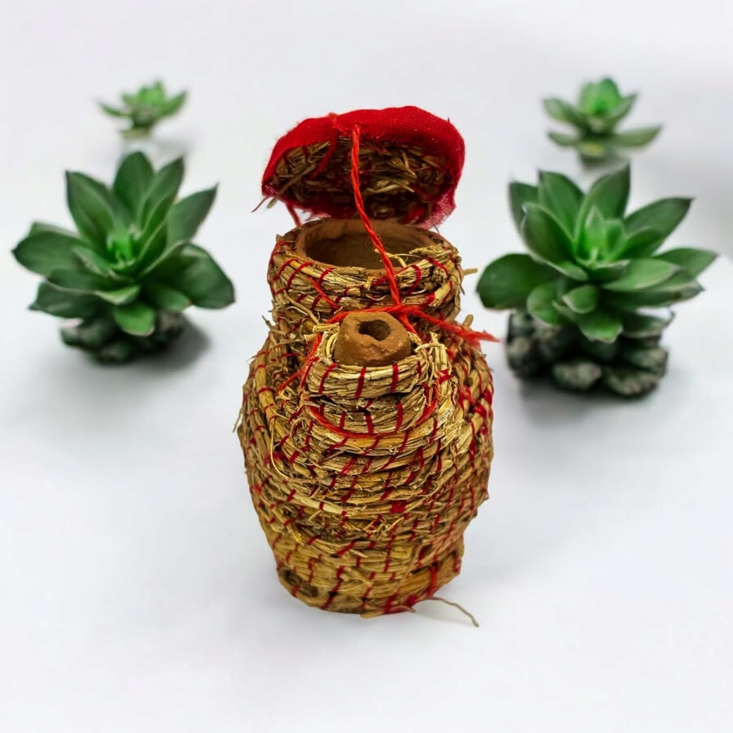 Bring divine grace and traditional charm to your Laddu Gopal’s daily puja rituals with the Achleshwar Laddu Gopal Jhari Ji. This handcrafted sacred pot is beautifully wrapped with natural straw fibers and secured using auspicious red thread, symbolizing protection, purity, and positive energy. Its rustic, handmade appearance reflects the timeless heritage of Indian devotional craftsmanship, making it a meaningful addition to any home temple.