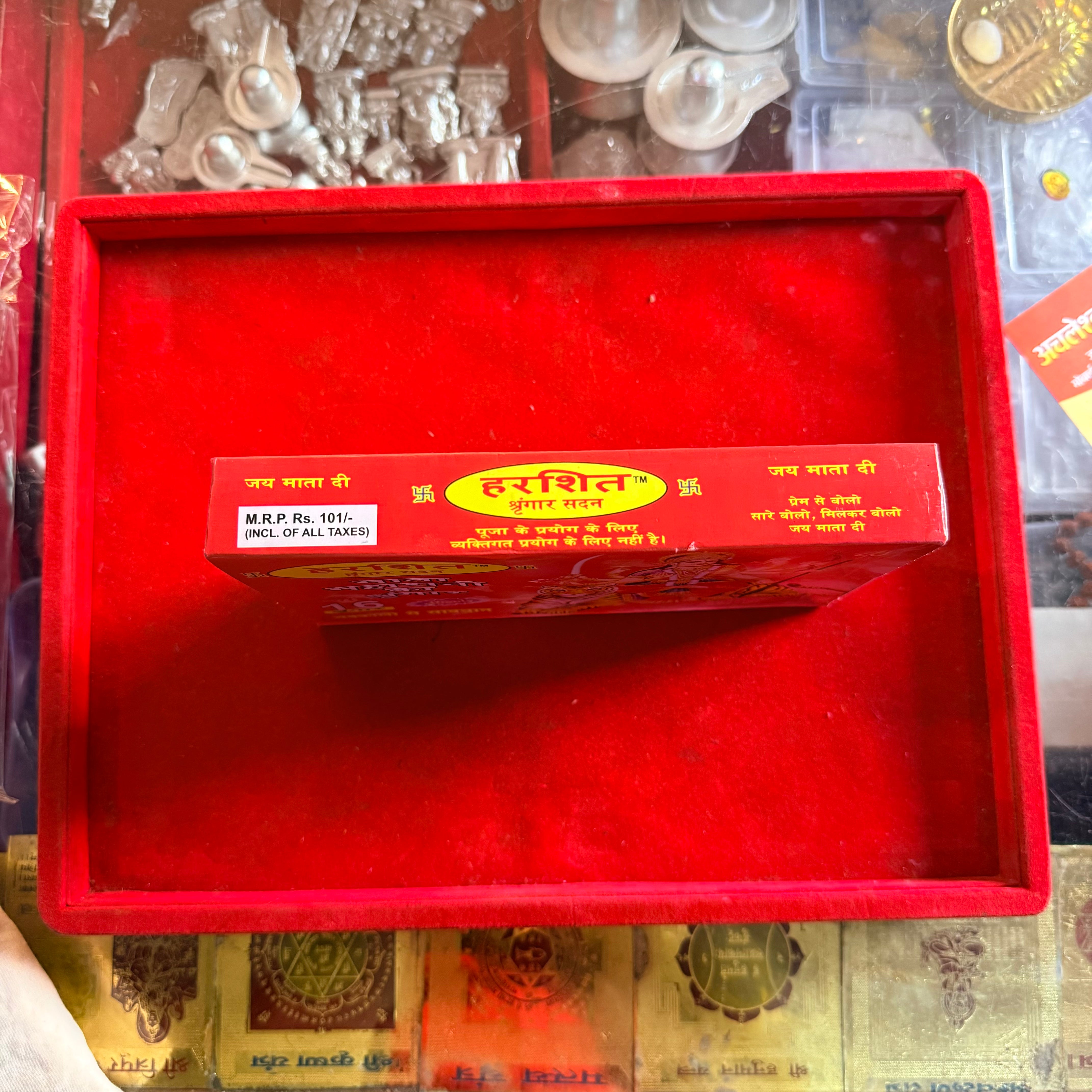 The Mata Shringar Kit – 16 Piece Nav Durga Pooja Set is a complete and thoughtfully curated pooja essentials set designed for Navratri, Durga Pooja, daily Mata worship, and festive rituals. This sacred kit contains all the essential shringar and pooja items required to beautifully adorn Maa Durga and perform traditional rituals with devotion and purity. Ideal for home mandir, temples, kanya pujan, Ashtami–Navami pooja, and gifting during festivals, this Nav Durga Shringar Samagri set saves time while ensuring all ritual necessities are available in one place. Each item is carefully selected to maintain religious sanctity and enhance the spiritual atmosphere of your pooja. A perfect blend of tradition, convenience, and devotion, this Mata Shringar Pooja Kit is suitable for both beginners and regular devotees.