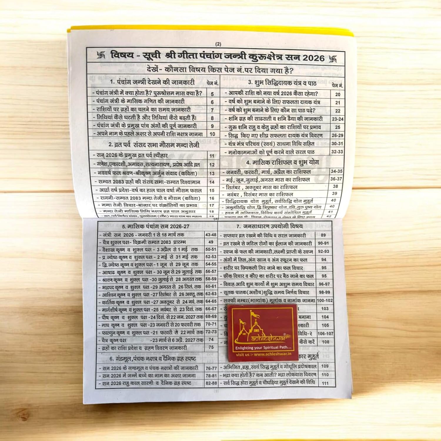 Achleshwar Shri Gita Panchangam Jantri Samvat 2083 (2026) | Complete Hindi Panchang & Calendar with Tithi, Muhurat, Rashifal & Festivals | By Shri Krishan Sharma Shastri