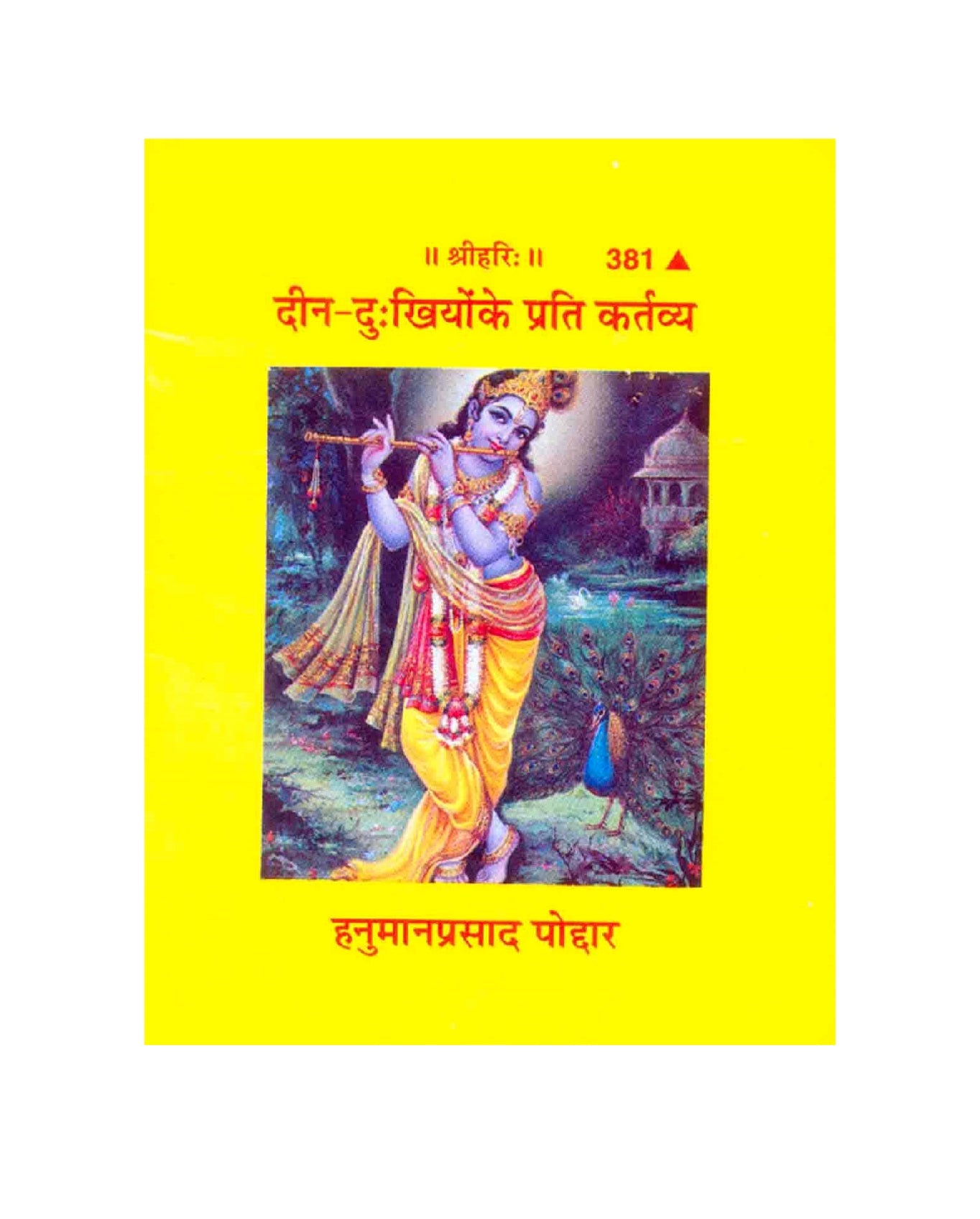 The book Gitapress Deen Dukhiyon ke Prati Kartavya (Code-381) is a Hindi language publication from Gitapress Gorakhpur, authored by Shri Hanuman Prasad Poddarji. This book talks about the duties towards the deprived and needy people of the society, such as the poor, sick, widows, and orphans.