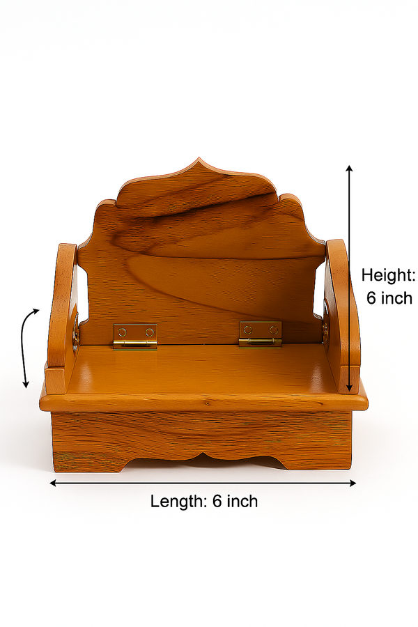 Adorn your pooja space with the elegance and strength of Sagwan Bal Gopal Singhasan (0-1-2 NO.), crafted from premium quality teak wood. Designed to provide a majestic seat for your Laddu Gopal or Thakurji idol, this singhasan blends traditional artistry with natural beauty. The fine craftsmanship and polished finish reflect devotion, care, and deep-rooted Indian cultural heritage.Each piece is hand-carved by skilled artisans, ensuring every detail enhances the divine presence of your deity.making it ideal for home mandirs, festive occasions like Janmashtami, or as a spiritual gift for loved ones. The durability of sagwan wood ensures it remains a timeless addition to your worship rituals for years.Whether placed in a home altar or temple shelf, this singhasan becomes the centerpiece of devotion. The rich wood grain, smooth surface, and sturdy structure make it not only a spiritual item but also a beautiful decorative piece.Bring home this wooden throne to elevate the presence of your beloved Krishna and add a touch of tradition, elegance, and positive energy to your sacred space.