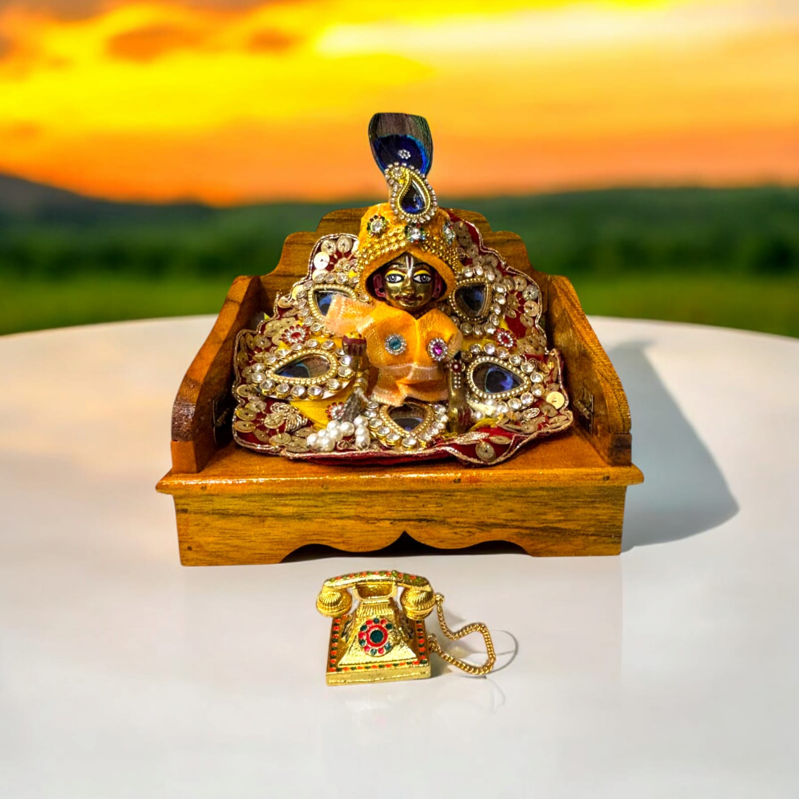 Add a charming vintage touch to your divine space with this Golden Metal Telephone Toy designed especially for Laddu Gopal Ji and Radha Krishna Ji. This miniature telephone accessory is a delightful addition to your deity’s surroundings, enhancing the playful and affectionate vibes of the mandir decor. Made from durable metal with a luxurious golden finish, it reflects traditional aesthetics while symbolizing the love and care devotees extend toward their beloved deity.