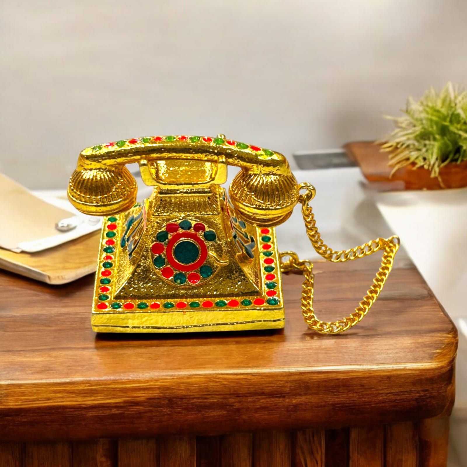 Golden Metal Telephone Toy for Laddu Gopal Ji & Radha Krishna Ji | Miniature Decor for God Idols