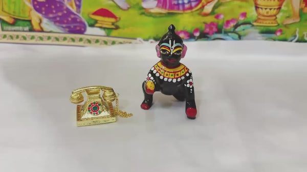 Perfect for Janmashtami, daily shringar, or special festival decoration, this miniature telephone creates a scene of divine leela and innocence. Place it beside Laddu Gopal Ji or Radha Krishna Ji to add a touch of uniqueness and devotion to your altar setup.