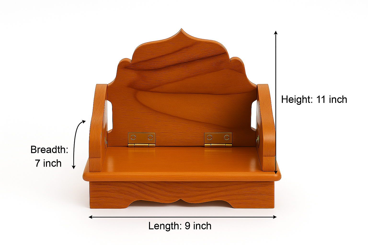 Adorn your pooja space with the elegance and strength of Sagwan Bal Gopal Singhasan (4,5,6 NO.), crafted from premium quality teak wood. Designed to provide a majestic seat for your Laddu Gopal or Thakurji idol, this singhasan blends traditional artistry with natural beauty. The fine craftsmanship and polished finish reflect devotion, care, and deep-rooted Indian cultural heritage.Each piece is hand-carved by skilled artisans, ensuring every detail enhances the divine presence of your deity. Its compact size is perfect for 1 No. Bal Gopal, making it ideal for home mandirs, festive occasions like Janmashtami, or as a spiritual gift for loved ones. The durability of sagwan wood ensures it remains a timeless addition to your worship rituals for years.Whether placed in a home altar or temple shelf, this singhasan becomes the centerpiece of devotion. The rich wood grain, smooth surface, and sturdy structure make it not only a spiritual item but also a beautiful decorative piece.Bring home this wooden throne to elevate the presence of your beloved Krishna and add a touch of tradition, elegance, and positive energy to your sacred space.