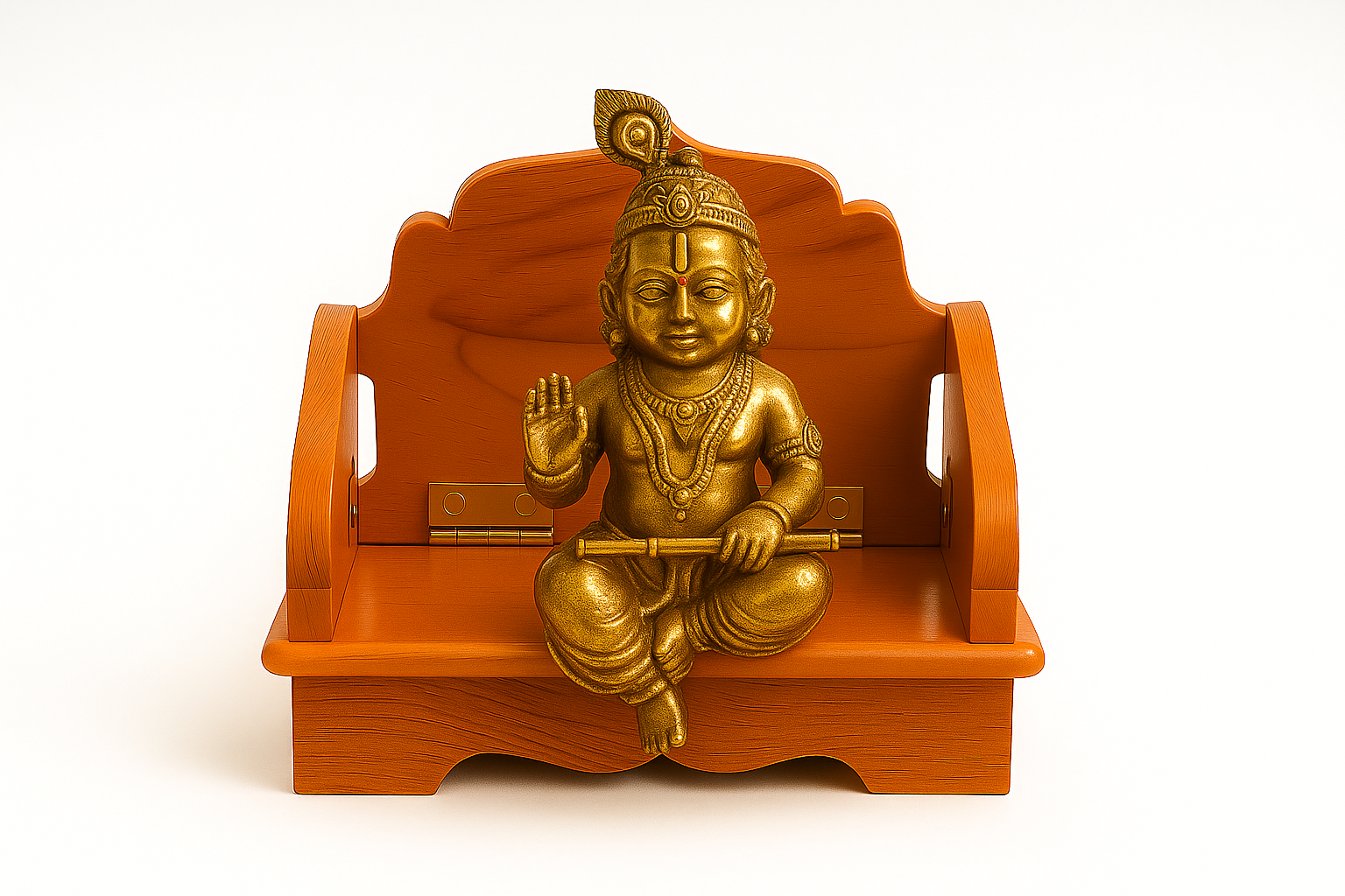 Adorn your pooja space with the elegance and strength of Sagwan Bal Gopal Singhasan (5,6, NO.), crafted from premium quality teak wood. Designed to provide a majestic seat for your Laddu Gopal or Thakurji idol, this singhasan blends traditional artistry with natural beauty. The fine craftsmanship and polished finish reflect devotion, care, and deep-rooted Indian cultural heritage.Each piece is hand-carved by skilled artisans, ensuring every detail enhances the divine presence of your deity. making it ideal for home mandirs, festive occasions like Janmashtami, or as a spiritual gift for loved ones. The durability of sagwan wood ensures it remains a timeless addition to your worship rituals for years.Whether placed in a home altar or temple shelf, this singhasan becomes the centerpiece of devotion. The rich wood grain, smooth surface, and sturdy structure make it not only a spiritual item but also a beautiful decorative piece.Bring home this wooden throne to elevate the presence of your beloved Krishna and add a touch of tradition, elegance, and positive energy to your sacred space.
