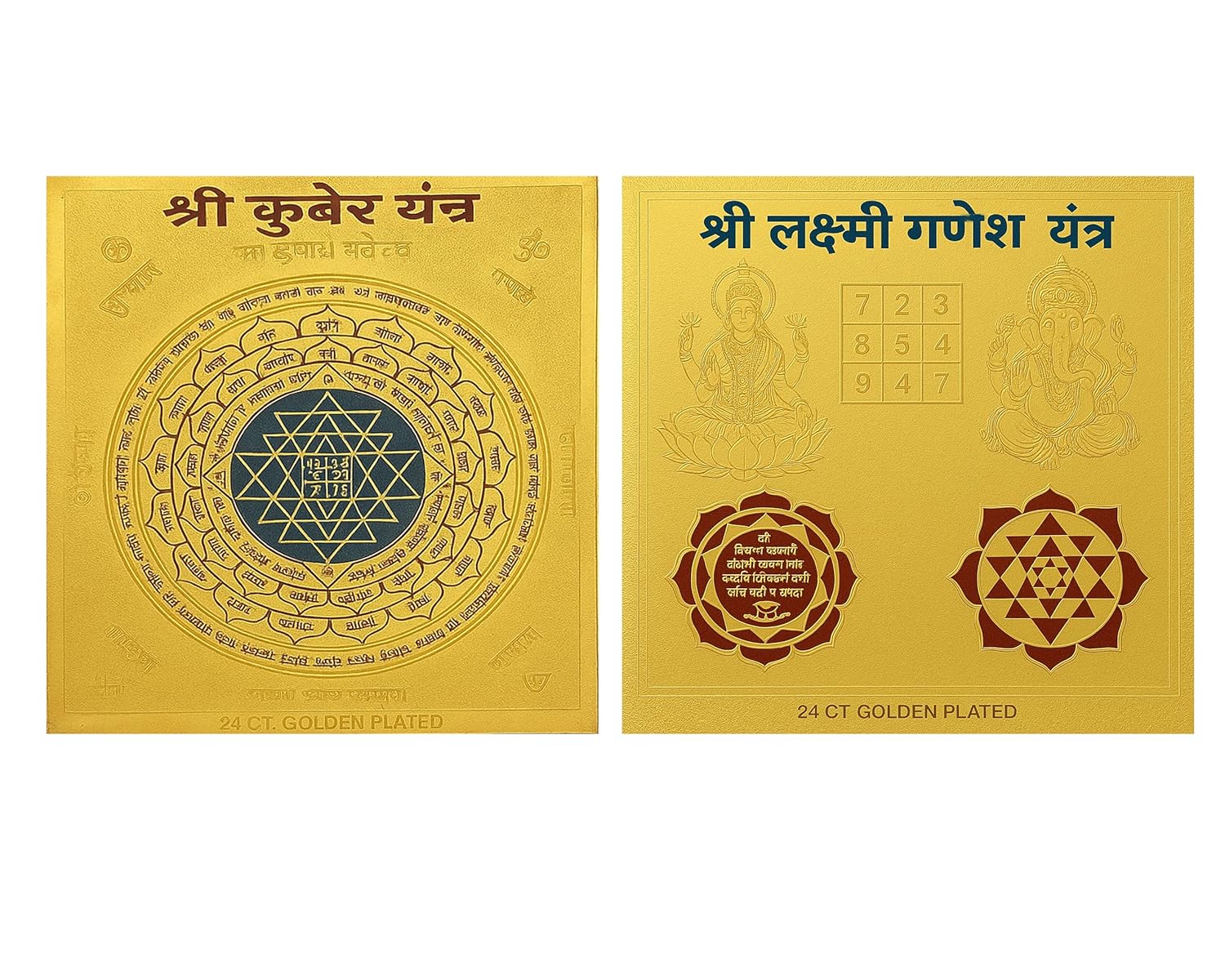 Dhan Sampatti Yantra Combo – Lakshmi Ganesh Yantra & Kuber Yantra | 24ct Gold Plated | Wealth, Prosperity, and Success