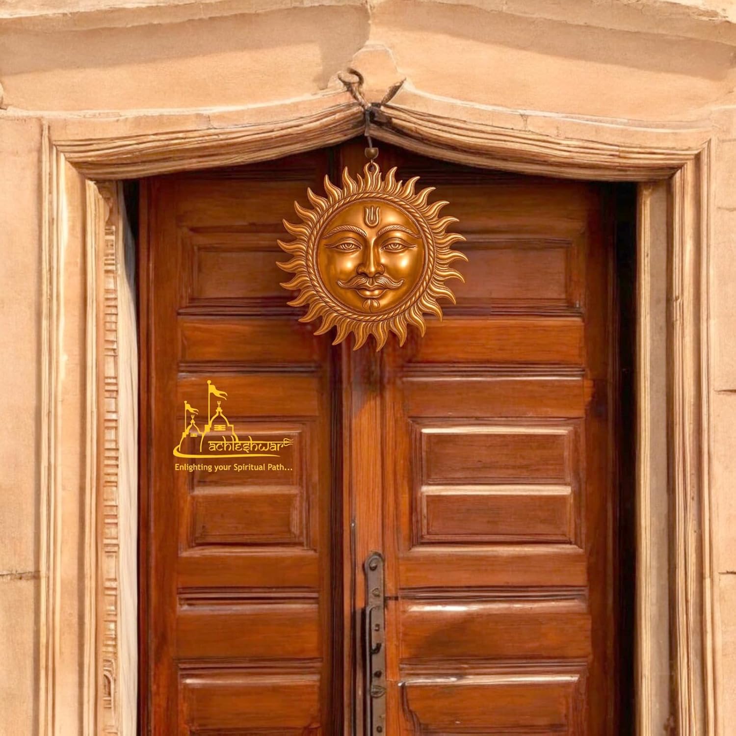 Sun Face Statue for Home Entrance & Office Decor | Vastu Puja Figurine for Positivity & Prosperity | Copper Sun God Wall Art 12 cm