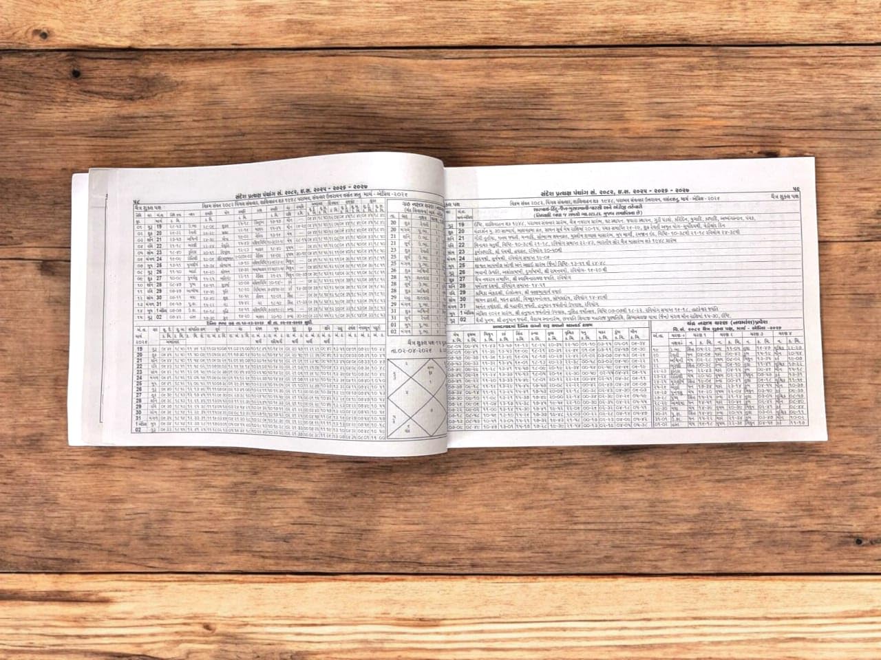 The Jantri Panchang is a traditional Indian calendar that provides information about dates, festivals, auspicious times (muhurat), and various astrological details. It typically includes: Tithis (Lunar Days): Details about the phases of the moon. Nakshatras: Information about the lunar mansions. Festivals: Dates for major Hindu festivals. Rashi (Zodiac Signs): Astrological significance of various days. Auspicious Times: Ideal timings for ceremonies and rituals.