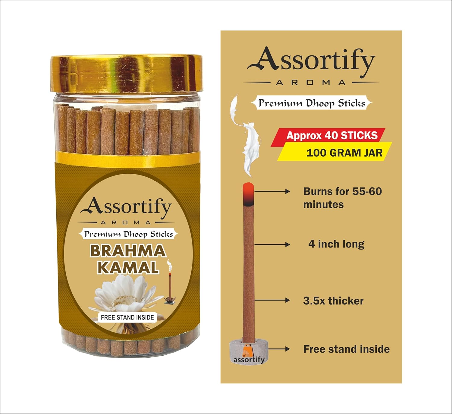 Brahma Kamal Dhoop Sticks Box for Pooja|Bamboless||100gm Jar Packaging | Less Smoke|