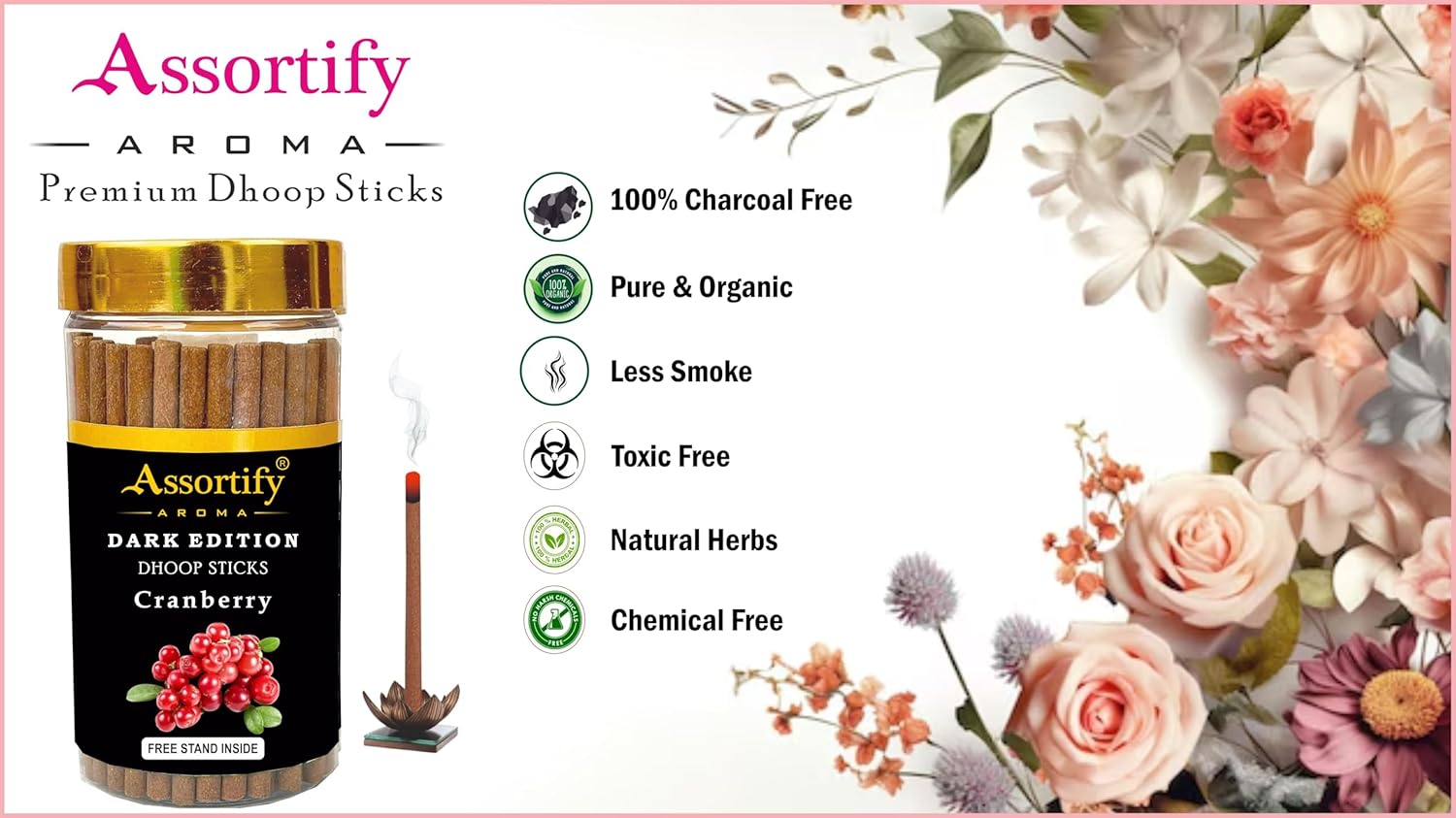 Cranberry Dhoop Sticks Jar|Natural Ingredients||100Gm Jar Packaging | Less Smoke|