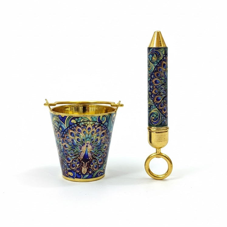 The Golden Bucket & Pichkari Set for Laddu Gopal Ji is a festive accessory designed for Holi celebration and Krishna decoration. This elegant golden set enhances the divine appearance of Laddu Gopal during Holi and other Krishna festivals. Ideal for home mandirs and temples, it adds charm, devotion, and joy to the festive atmosphere.