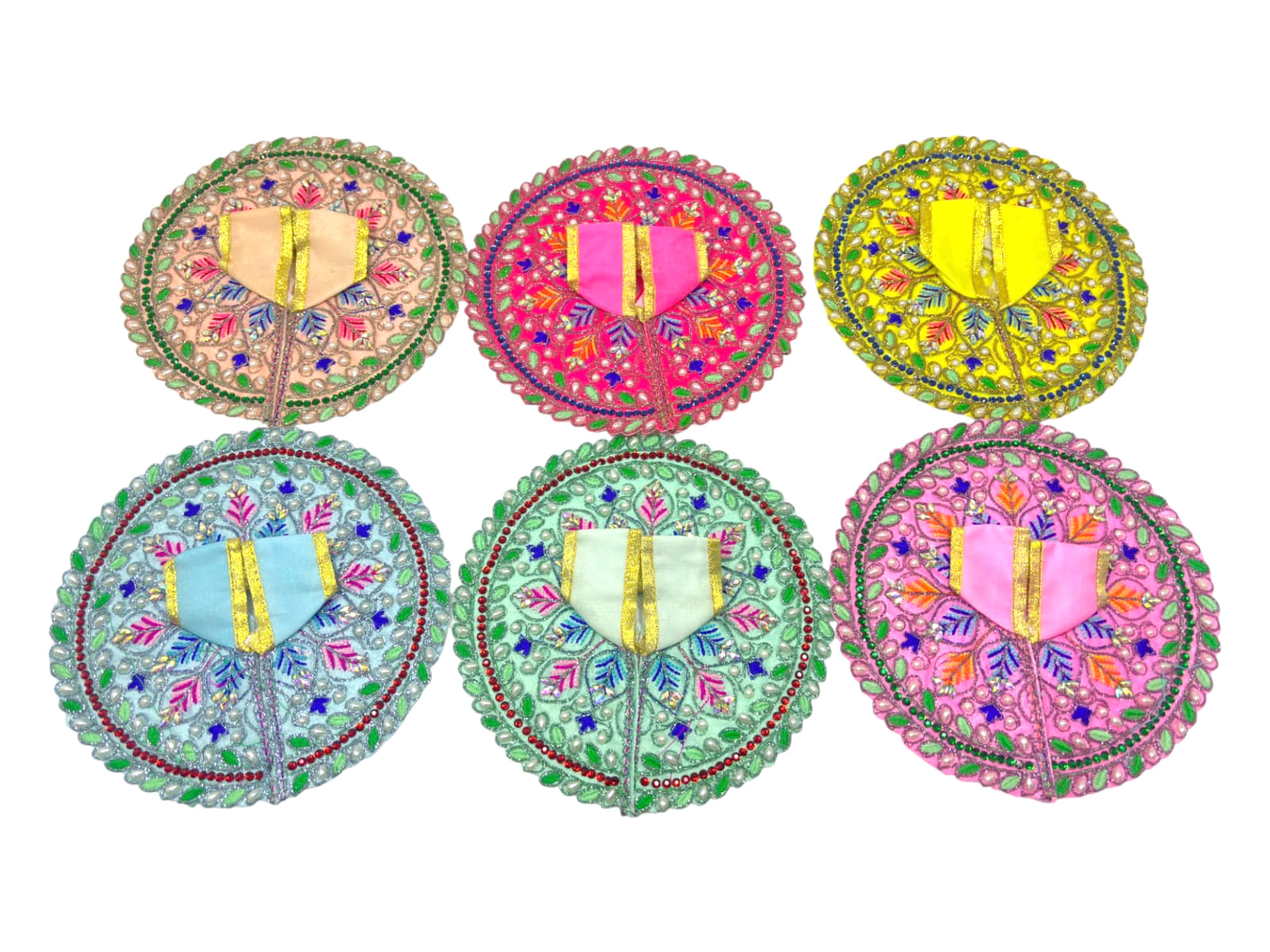 Adorn your beloved Laddu Gopal ji with this beautifully handcrafted  Poshak, made with intricate  Embroidery  . This dress is specially designed for small Bal Gopal idols, offering a perfect fit and a graceful temple look. The divine outfit features shimmering golden embroidery and delicate stones that enhance the charm and elegance of your Thakur ji. Ideal for daily darshan, Janmashtami, and pooja room decoration, this poshak is a symbol of devotion and traditional craftsmanship. Made with love and care, it brings vibrant energy to your mandir and radiates divine grace.Note: Color may vary, design remains the same. Handmade with variations that enhance its uniqueness.