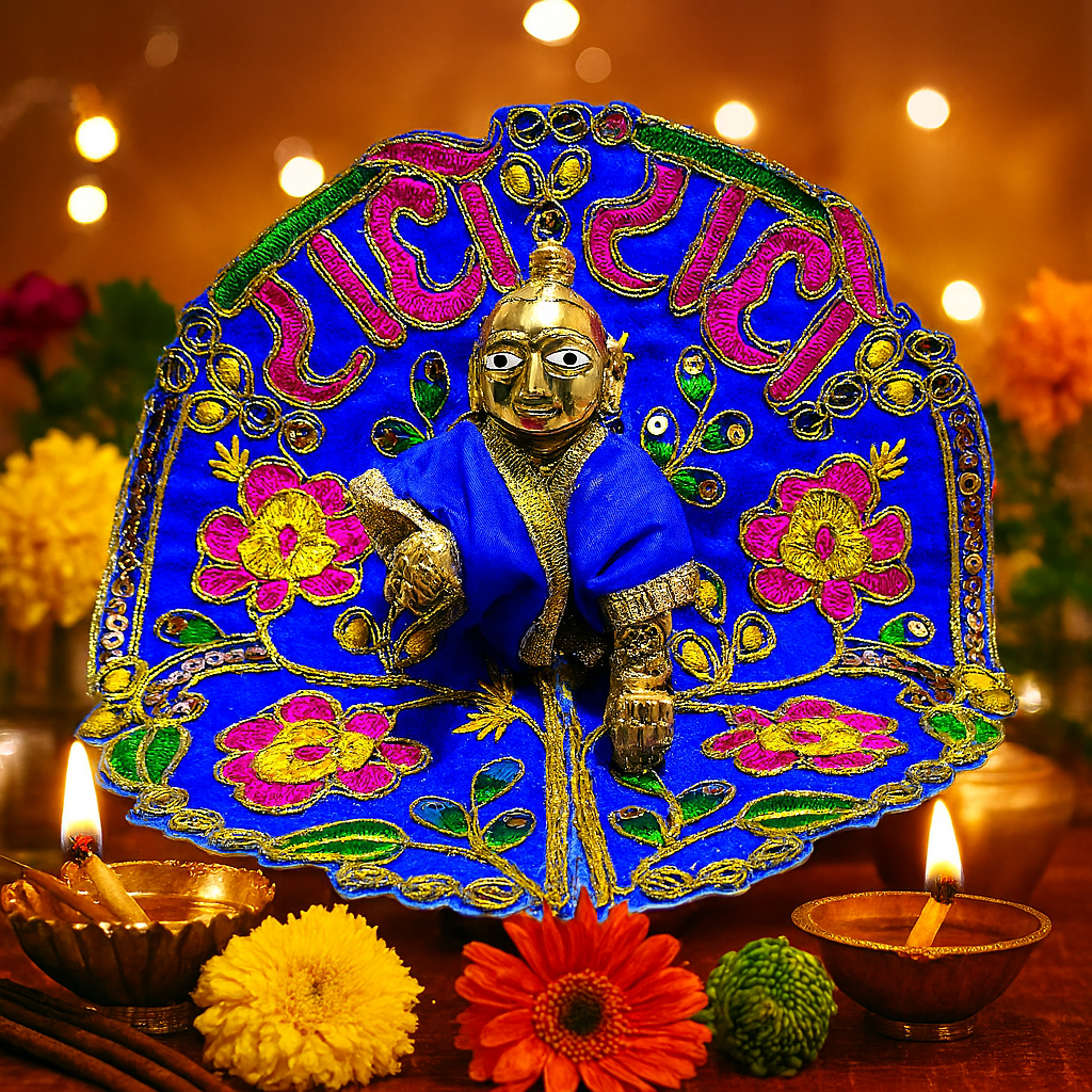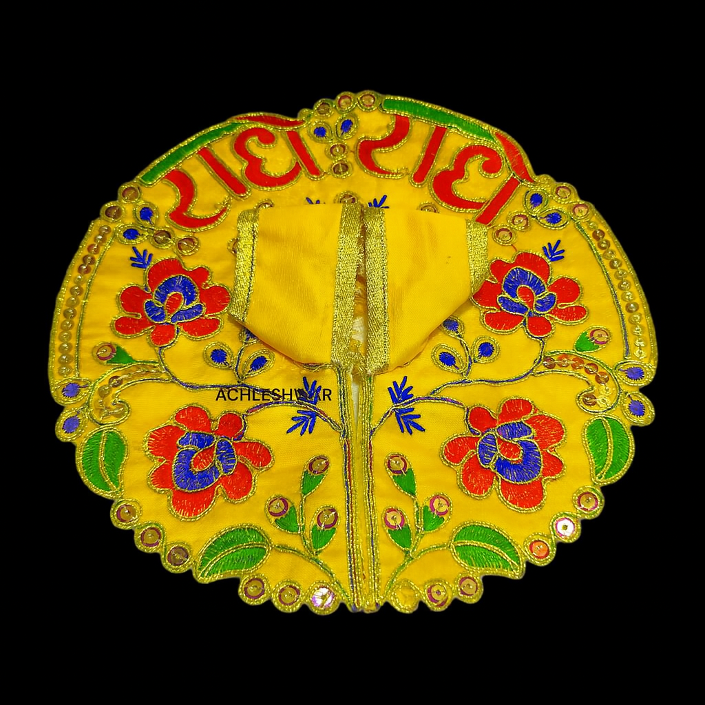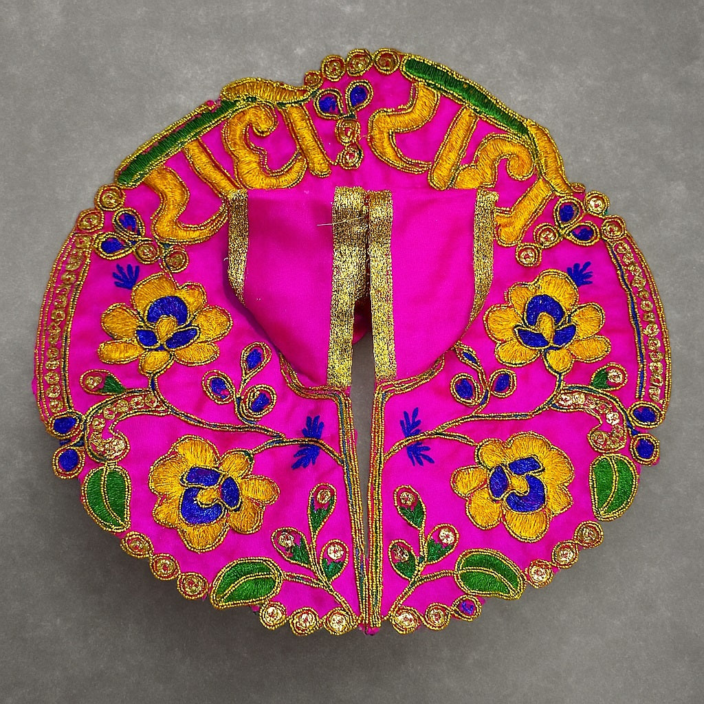 Dress your beloved Laddu Gopal in divine elegance with our Premium Radha Naam Shringar Poshak for Size 0 idols. This handcrafted dress set features delicate Jari work and stone embellishments, beautifully adorned with the sacred name "Radhey Radhey" intricately written on each piece. Designed specially for small idols, each poshak offers a perfect fit, vibrant colors, and a spiritual charm ideal for daily darshan, Janmashtami, or festive puja. The premium-quality fabric is gentle on your Thakur Ji’s murti and enhances the divine aura of your home mandir. This devotional attire truly reflects love and devotion toward Laddu Gopal.e.Note: Color may vary, design remains the same. Handmade with variations that enhance its uniqueness.