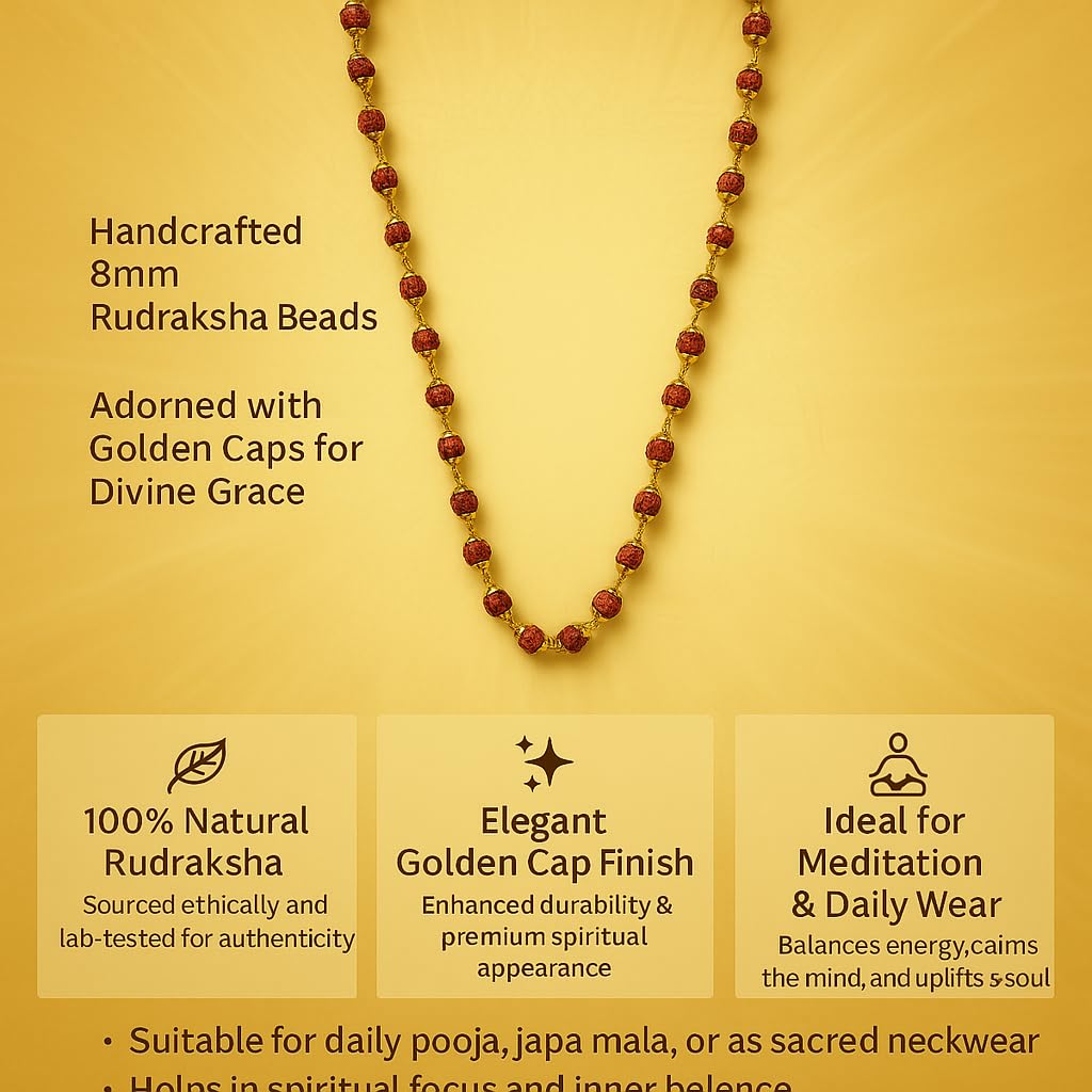 Achleshwar 8mm Rudraksha Mala with Golden Caps